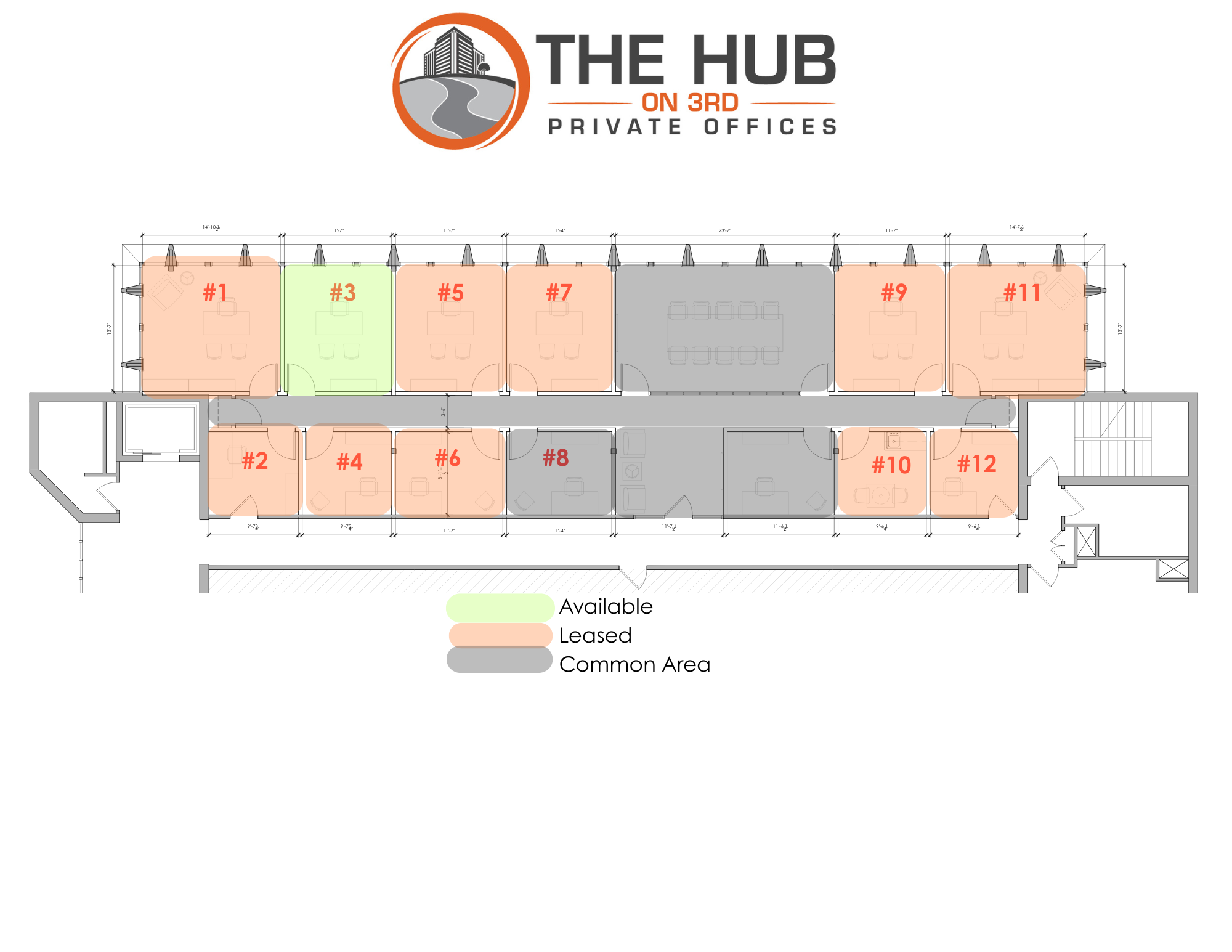 | Office | Size (RSF) | Rent | Available | Status |